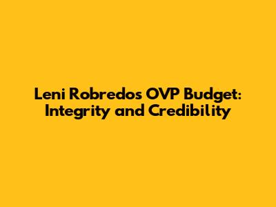 Leni Robredo's OVP Budget: Integrity And Credibility